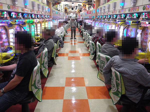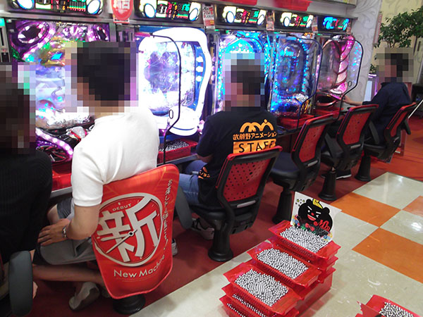 15時頃の4円パチンコでは、特に「CR真・花の慶次2」が大盛況。嬉しそうな展開に笑顔をみせるプレイヤーが続出し、その盛り上がりぶりは店内イチ。