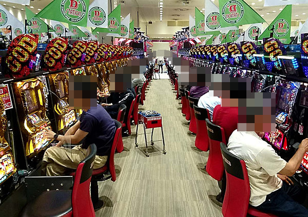 4円パチンコをみると、「ぱちんこCR真・北斗無双」や「CR真・花の慶次2」が大にぎわい。楽しい雰囲気に包まれており、たくさんの笑顔がみられた。