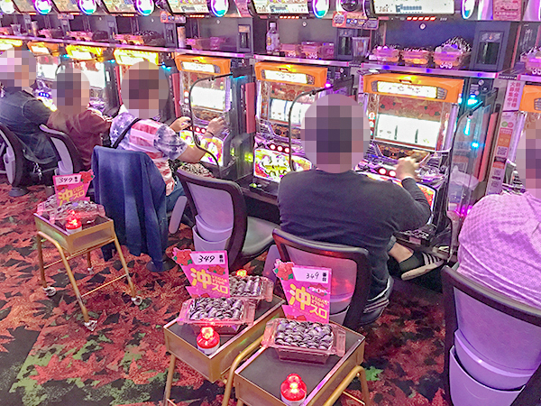 さらに、20円パチスロのあらゆる機種が、ほぼ満席となっていた。