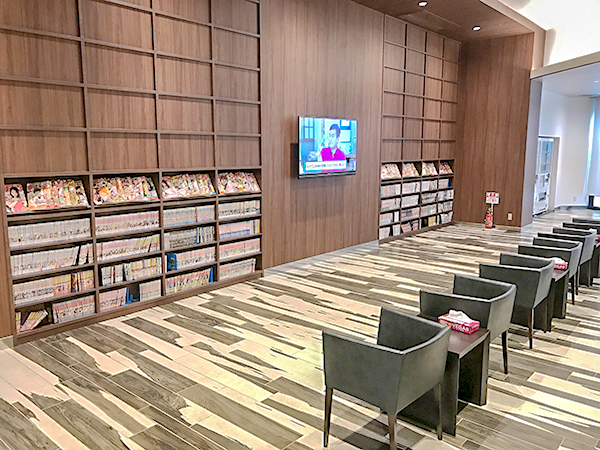 レストスペースにはテレビや幅広いジャンルの漫画本を用意。ゆっくりとリラックスできる環境が整っている。