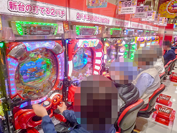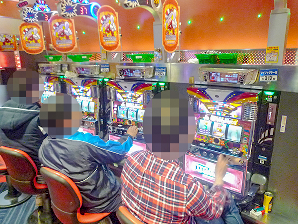 1000円/188枚パチスロも空き台が見当たらないほどの支持を得ており、様々な機種で微笑ましいシーンを確認している。