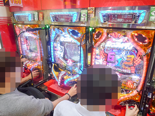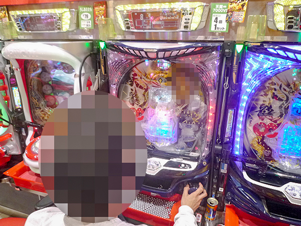 16時ごろの500円/118玉パチンコに目を向けると、「CR天龍∞ 7000VS」や「CRフィーバー戦姫絶唱シンフォギア」が大盛り上がりで、機種の醍醐味を堪能するプレイヤーを複数目にしている。
