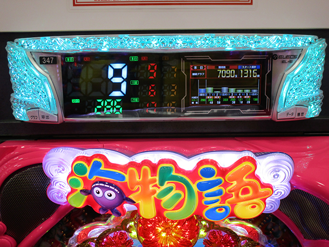もう1台は大当り9回の12,150pt持ち。