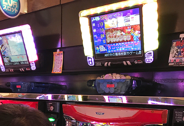 すでにボーナス30回オーバーの台がゴロゴロしており、その盛り上がりは他の沖スロにも伝染していった模様。