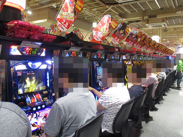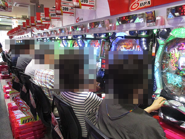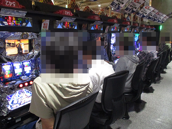 20円パチスロでは、「パチスロ北斗の拳 強敵」にたくさんのプレイヤーが集まっており大人気。満面の笑みをみせるプレイヤーも多く、シマ一帯には輝かしい光景が広がっていた。