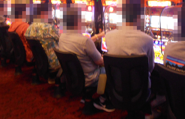 午後のパチスロにおいて、とくに盛り上がっていたのが「沖ドキ!-30」。活躍をするプレイヤーが多く、シマ全体に魅力的な光景が広がっていた。