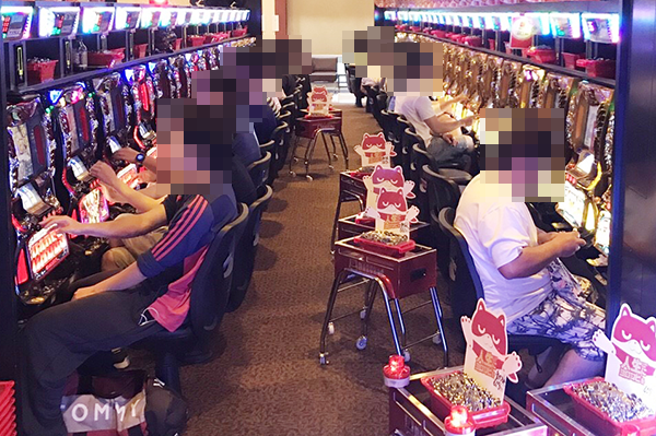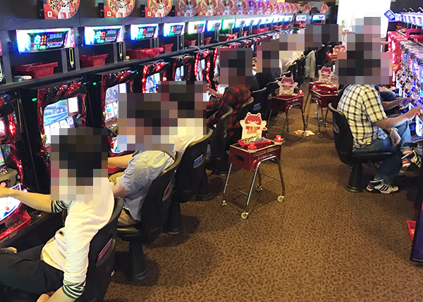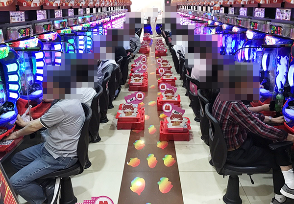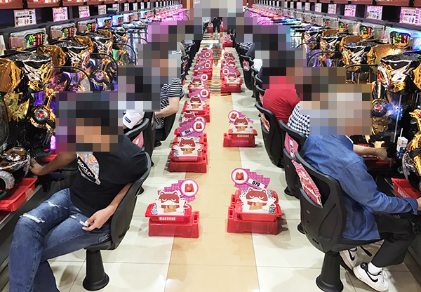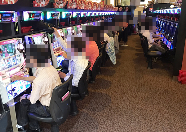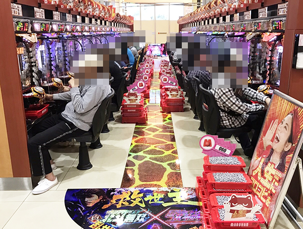 4円パチンコでは、「ぱちんこCR真・北斗無双」と海物語シリーズへ向かうプレイヤーの姿があった。