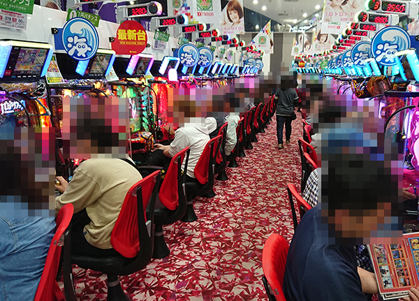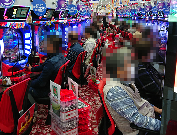 午後の4円パチンコをみると、前日も人気を集めていた「CR大海物語4」や「ぱちんこCR真・北斗無双」に魅力的な光景が広がっていた。