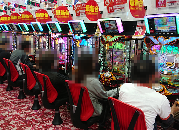 新台の「パチンコCR偽物語」や「CRフィーバーR-18」もプレイヤーの笑顔で彩られており、明るいムードが感じられた。