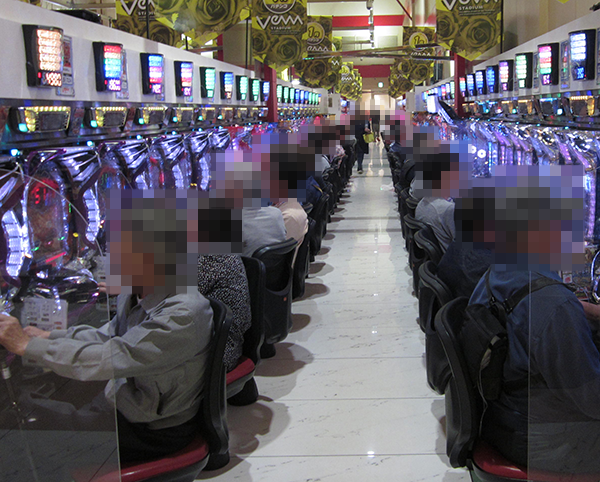 貸し玉料金を問わず、パチンココーナーも大勢のプレイヤーでにぎわっていた。