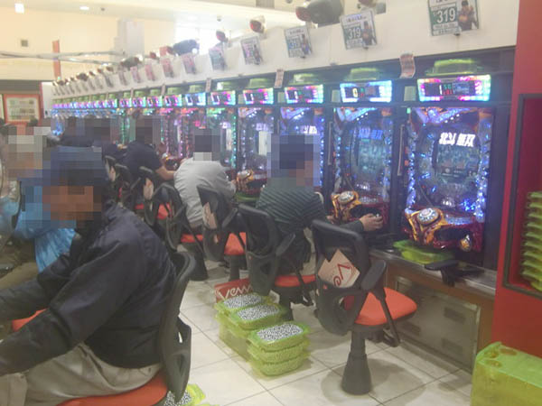 1円パチンコは年配層を中心に活況。豊富なタイプが魅力の海物語シリーズは空き台も少なく、「CRバジリスク~甲賀忍法帖~弦之介の章」では嬉しそうに遊技をする場面を確認できた。