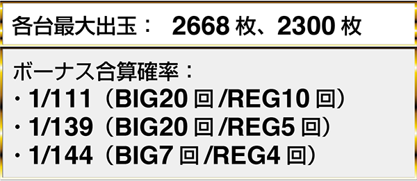 ・『ハナハナ鳳凰-30』にボーナス合算確率1/140以下が2台