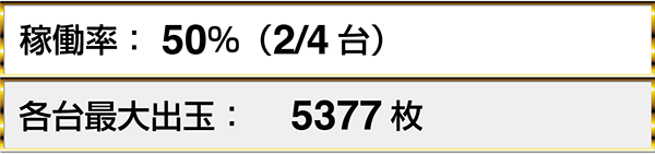 取材時にもっとも多くの出玉を獲得していたのは『パチスロ北斗の拳 転生の章』の5377枚。