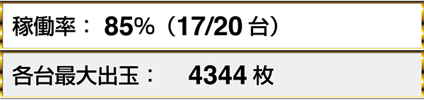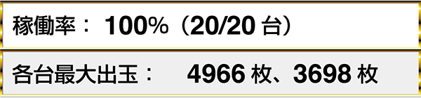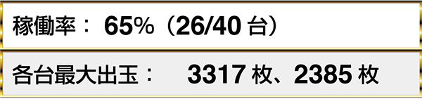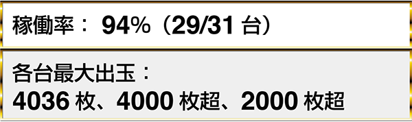 『バジリスク~甲賀忍法帖~絆』や『沖ドキ!-30』、『押忍!番長3』で最大獲得枚数が4000枚を超えるデータを確認した。