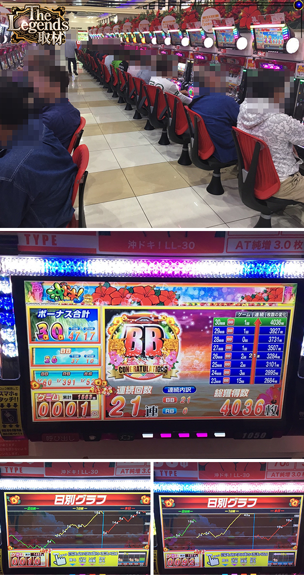 ・『沖ドキ!-30』に最大獲得枚数4000枚overが2台
