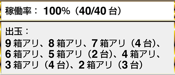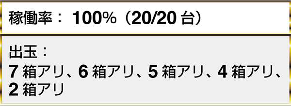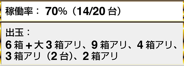 『ぱちんこCR真・北斗無双』や『CR大海物語4』では、17名以上のプレイヤーが2箱以上の出玉を獲得していた。