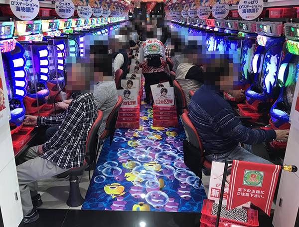 4円パチンコにおいて、とくに盛り上がっていたのは「ぱちんこCR真・北斗無双」と「CR大海物語4」。シマ全体が輝くような笑顔で彩られており、多くのプレイヤーが有意義な時間を過ごせていることが伝わってきた。