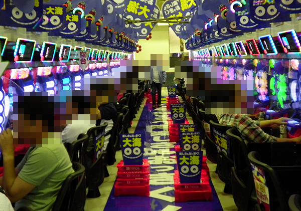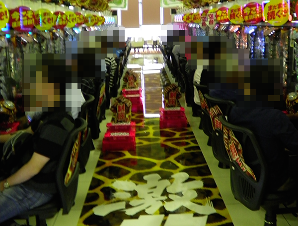 4円パチンコのなかで、とくに目立っていたのが海物語シリーズと「ぱちんこCR真・北斗無双」。活躍をするプレイヤーが多く、シマ全体が明るい空間となっていた。