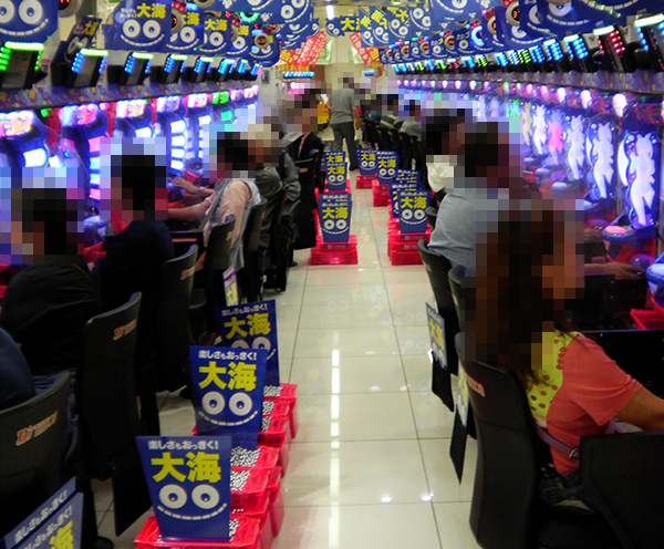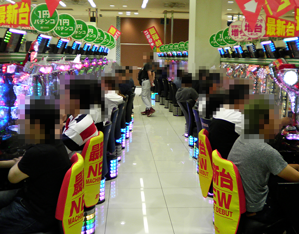 多くのプレイヤーでにぎわう1円パチンコと0.2円パチンコからも明るいムードが感じられた。
