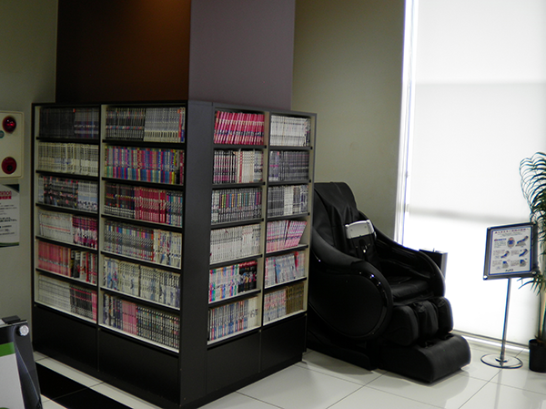 ホール内に設けられたレストスペースには、マッサージチェアや豊富な種類のマンガを完備。1日を通して居心地よく過ごせる優れた設備面も魅力的だ。