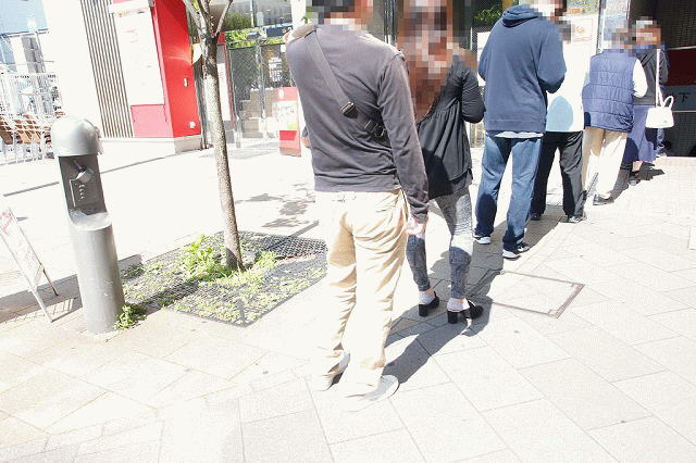 開店前には階段だけでは収まり切れず、地上スペースにまで溢れるファンの一群。