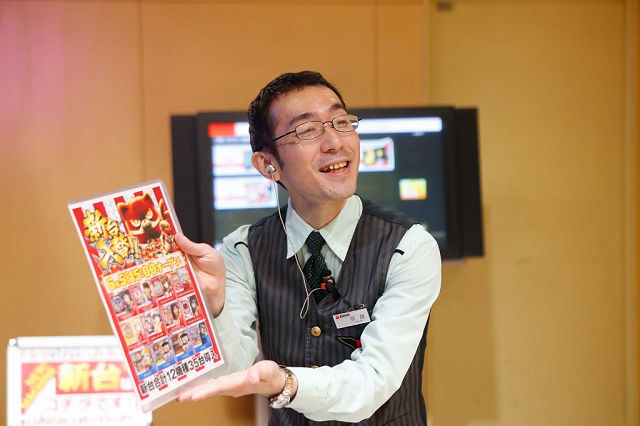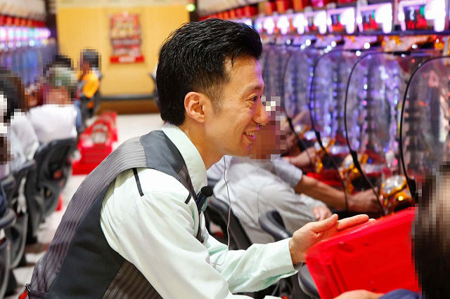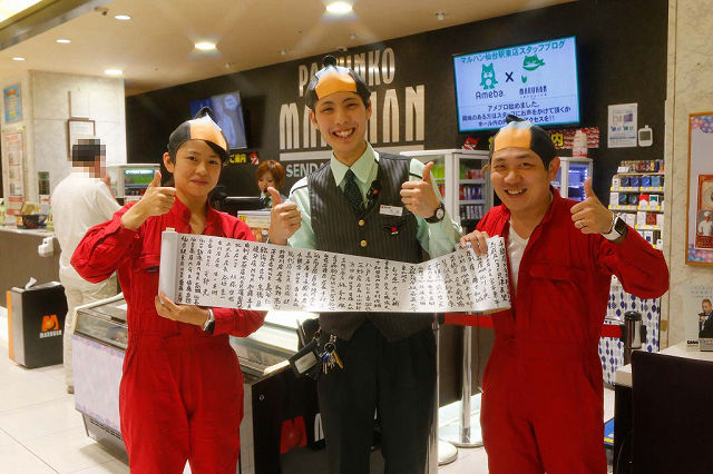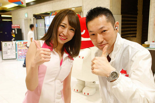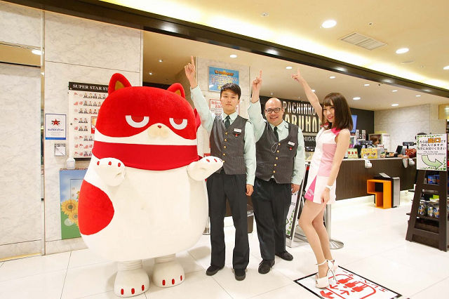 この日は全国行脚中「スロットの帝王」なる夫婦も来店。スタッフとともに笑顔でパシャリ。それにしても何故チョンマゲ?
