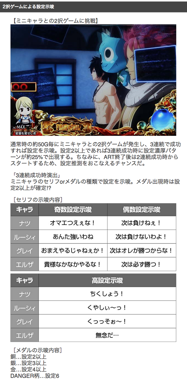 ▼「パチスロ FAIRY TAIL」設定推測ポイント▼