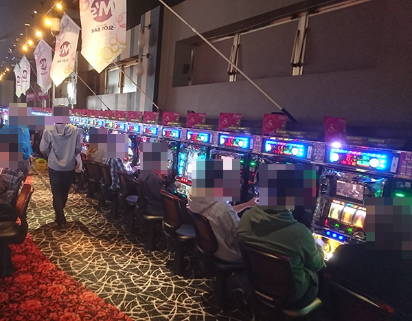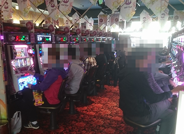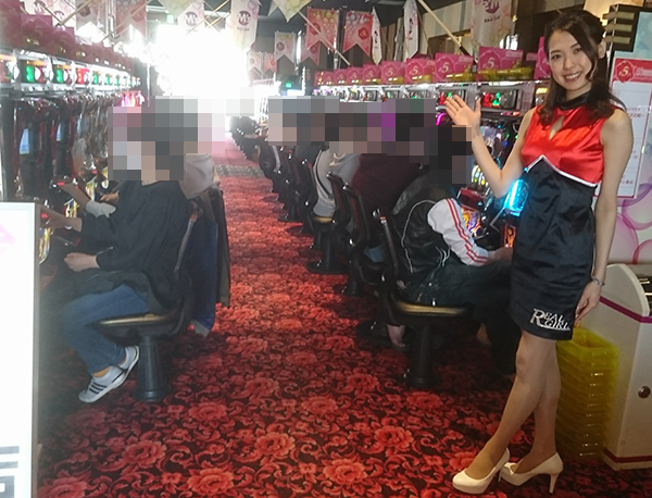 さまざまな機種が並んでいるホール内では、多くのプレイヤーが遊技を楽しんでいた。