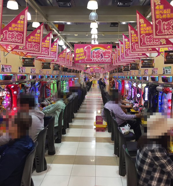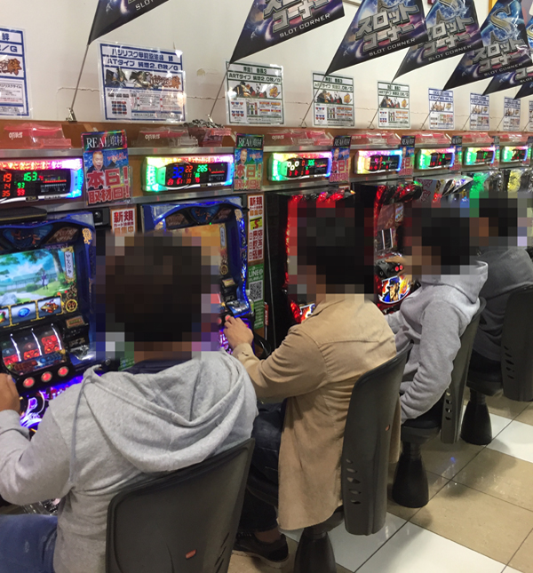 取材当日は、パチンコ・パチスロ共に幅広い年代のプレイヤーでにぎわいを見せていた。