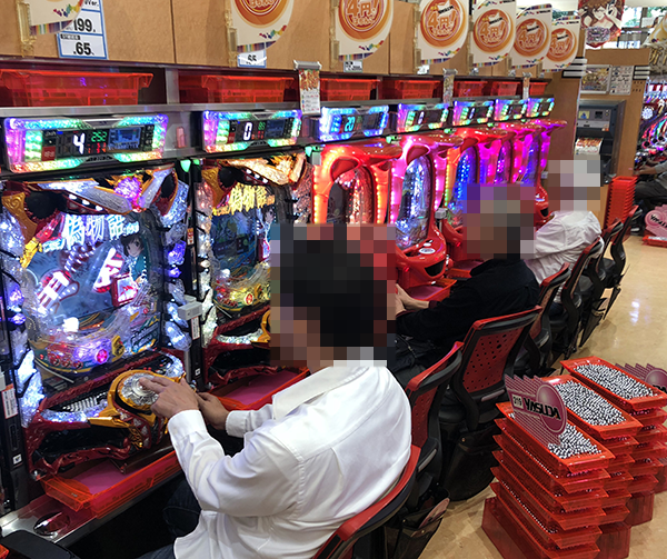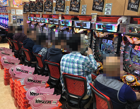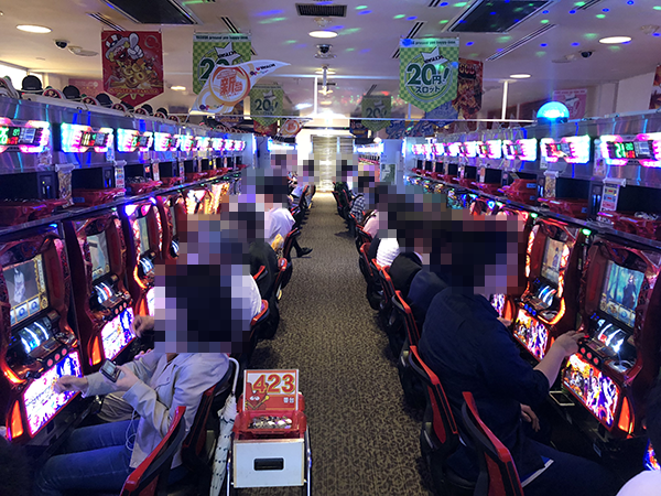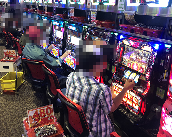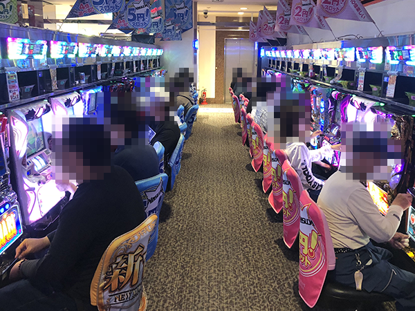 20円パチスロでは、「バジリスク~甲賀忍法帖~絆」の支持が厚い。満面の笑みを浮かべながら遊技をおこなう姿からは、有意義な時間を過ごせていることが伝わってきた。