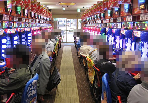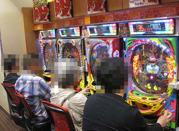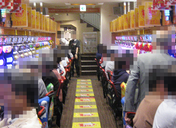 4円パチンコでは、定番の海物語シリーズが大人気。遊技を満喫しているようなプレイヤーが多く、大にぎわいとなっていた。