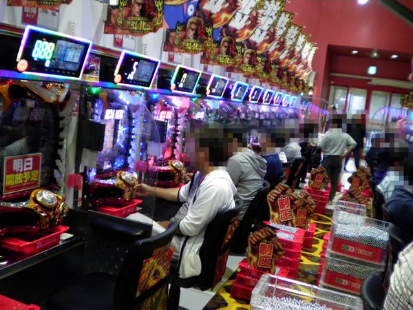 4円パチンコを見てみると、「ぱちんこCR真・北斗無双」や「ぱちんこCR北斗の拳7 転生」の北斗シリーズと「CR大海物語4」をはじめとした海物語シリーズに人気が集中。通路を通り抜けるのが大変なほどの盛り上がりとなっており、周りのプレイヤーからの注目を集めていた。