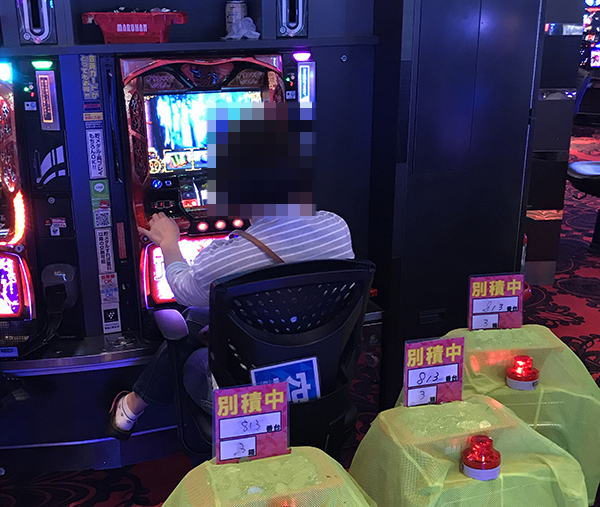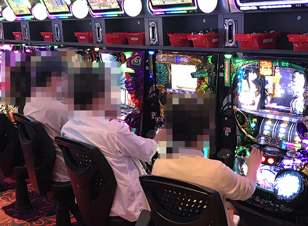 16時頃の21.27円パチスロにおいて、もっとも活気づいていたのは「バジリスク~甲賀忍法帖~絆」。機種の性能を最大限に引き出せているといった姿からは、充実した時間を過ごせていることが伝わってきた。
