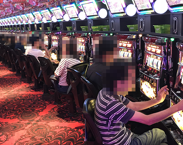 また、5円パチスロの盛り上がりも大きい。イキイキとした表情で遊技をおこなう姿があちこちでみられた。