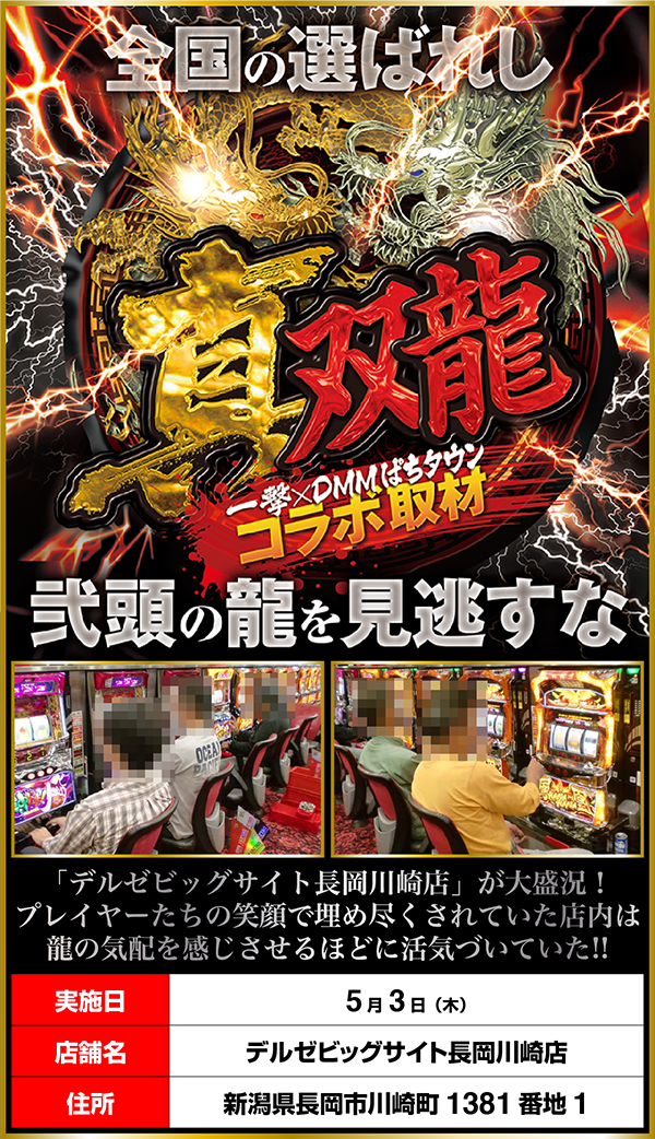 「真双龍」の舞台となったのは、さわやかな色合いの外観も特徴的な「デルゼビッグサイト長岡川崎店」。