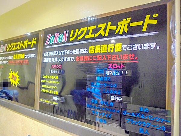 同店では設置機種のリクエストをおこなうとともに、経過状況を掲示板で報告もしており、プレイヤーのニーズに応える姿勢に感心させられた。