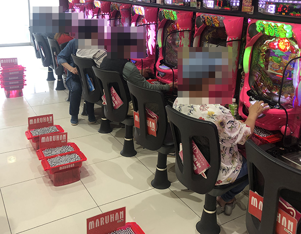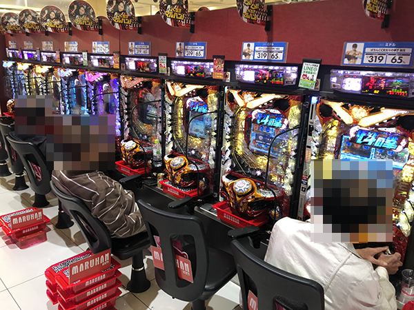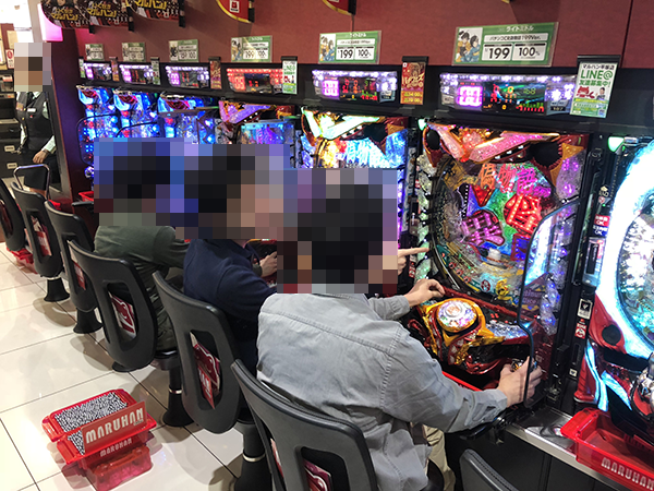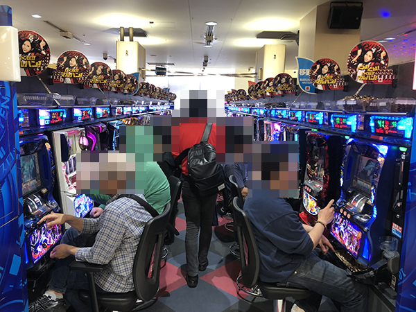 午後の4円パチンコでは、定番の海物語シリーズが高稼働。納得といった様子のプレイヤーが多く、シマ内は活気にみちあふれていた。