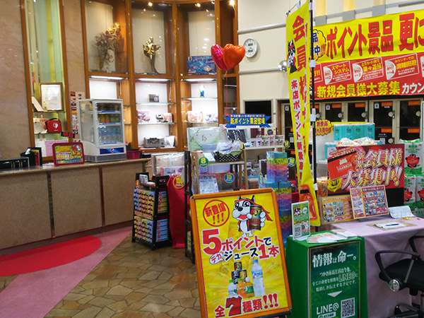 景品コーナーは日用品やおもちゃ、食器類など豊富な品揃えで、プレイヤーの幅広いニーズに応えている。