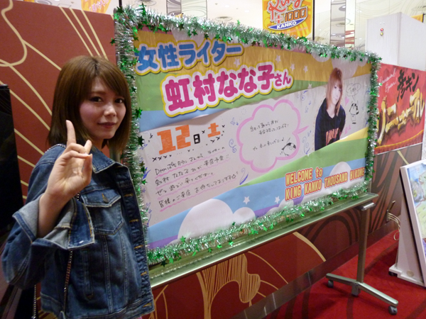 虹村なな子の写真入りでキレイに飾り付けられたホワイトボードなども設置。