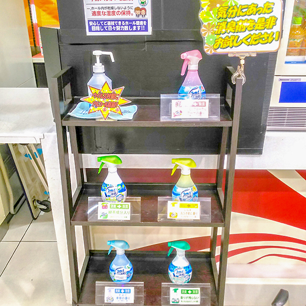 店内には消臭スプレーが複数用意されており、タバコのにおいが気になるプレイヤーにとって嬉しいアイテムが揃っている。