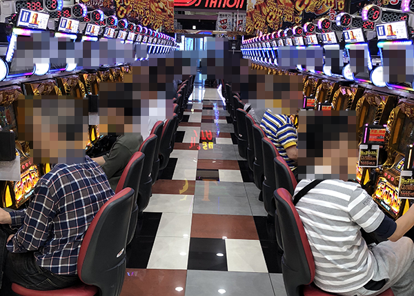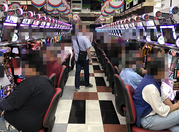 午後の1000円/47枚パチスロでは、「ミリオンゴッド-神々の凱旋-」や「沖ドキ!」が活況。笑みを浮かべているプレイヤーがみられ、明るい雰囲気も感じられた。