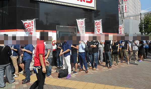 9時30分からおこなわれている入場抽選には、130人以上が参加。この日は、一般入場も合わせると160人以上のプレイヤーたちが、ホールを囲むように長蛇の列を作っていた。