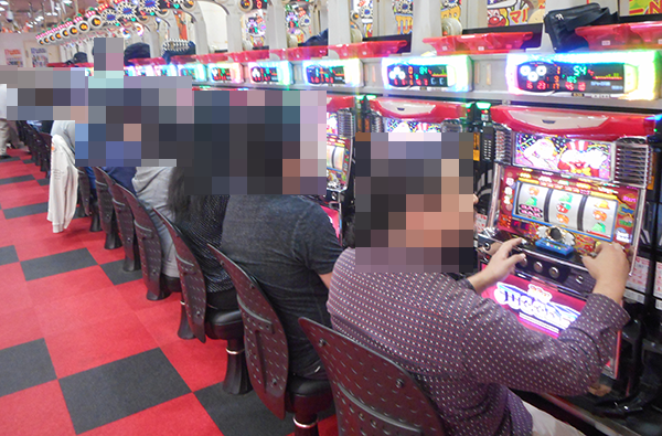 また、朝イチから注目を集めていたジャグラーシリーズでは、小役カウンターを使用しているプレイヤーも含めて、多くのプレイヤーが遊技を続行していた。満足度も高そうにみえるなど、遊技を満喫していることがうかがえた。