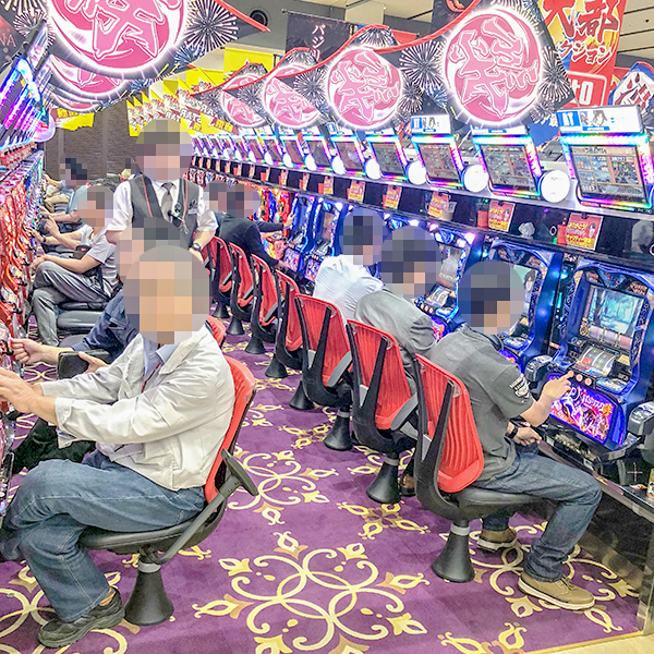 同店はパチンコ520台・パチスロ420台、合わせて940台を設置する大型ホール。取材時も老若男女を問わず、大勢のプレイヤーが集まっていた。
