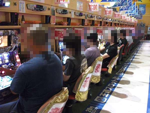 取材日の9月14日はパチスロコーナーのみ11時開店となっており、早い時間からオープンを待っているプレイヤーの姿もあった。