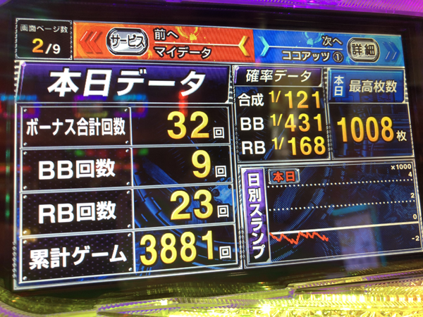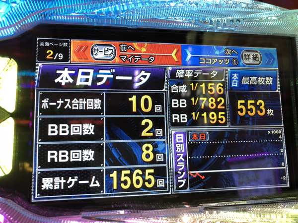 最終的には高設定といったボーナス確率となり、大幅なプラスの差枚でフィニッシュ!