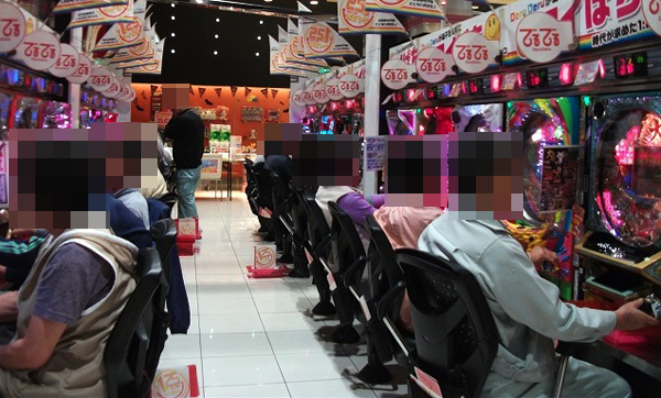 取材日における開店前の並びは約10名だったが、開店直後に来るプレイヤーが多く、しばらくするとホール内はにぎわいをみせはじめる。