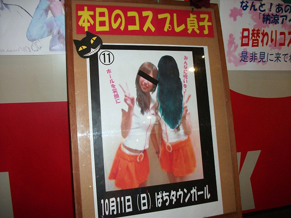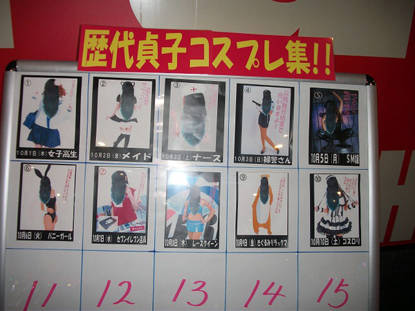 ちなみに、グループ店舗共通で、日替わりの「貞子のコスプレ」という興味深い企画がおこなわれており、通路にはコスプレ写真も展示。
