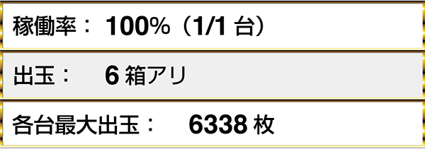 取材時にもっとも多かった獲得出玉は『パチスロ北斗の拳 転生の章』の6338枚。