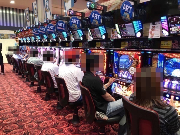 なかでも、新台「秘宝伝 Rev.」は満席。そのほか、「バジリスク〜甲賀忍法帖〜絆」や「ミリオンゴッド-神々の凱旋-」といった定番機種が人気を集めていた。